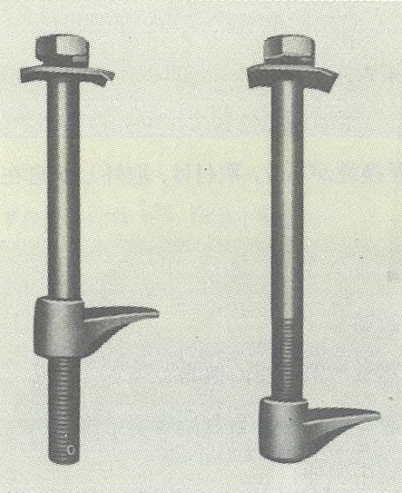 橋まくらぎを橋ゲタに定着させるために用いられるフックボルトは、まくらぎの厚さおよびパッキンの厚さにより、ボルトの働き長さが多種多様で外山鉄道研究所勤務時代から、その管理・選別に困惑した苦い経験を持つ渡辺社長ならではの発想と設計思想から作られている。