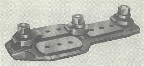 鋳鋼または一般構造用鋼を使用して材質を強靱にしボルトの長さも短くして、使用材の節減を図った。しかも弛緩防止にスプリングワッシャーを併用しても、全体のコストは従来より安価に製造できた。