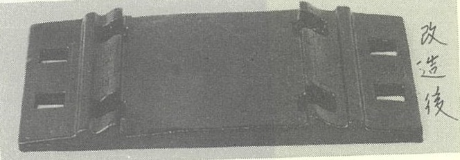 小冊子「古タイプレートの改造」によると 「欠点をすぺて解消するため現行B型に鍛造変えすれば、摩耗甚だしき廃品も新品同様に更生できる。改造方法は、古タイプレートをそのまま赤熱して型打鍛造機にかけ、現行B型に鍛造変えする」