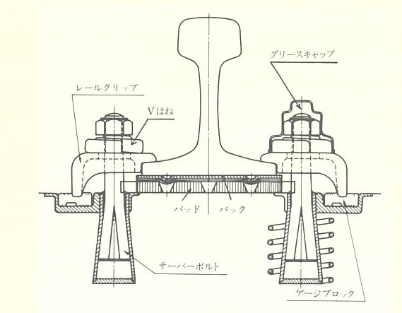 施工を容易にする締結構造とは、敷設後軌道の整正が可能であり、かつまた部品類か単純で防錆、耐摩耗、交換性、互換性などに富むほか取り付け操作か容易であるという現場作業上の要素を必要とする。