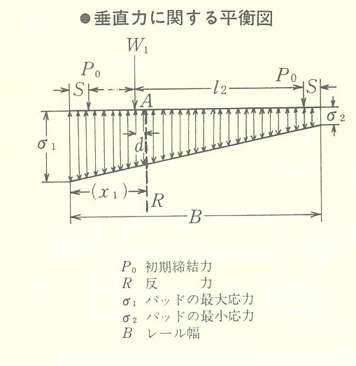 支承体当りの最大支圧力ならびに最大横圧力に十分耐えられ,弾性支承の効果かあって耐久性かあることが必要であった。すなわち、パッドの材質硬度、形状率、ばね定数の選定やこれに伴うレールクリップのばね力、たわみ量、疲労限界などを考慮に入れた締結構造とする。