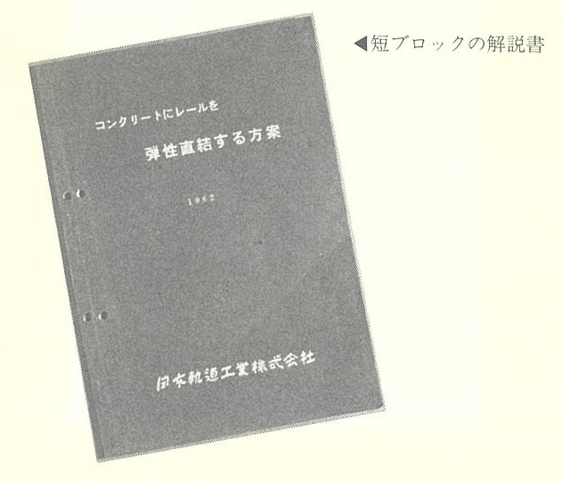 この当時、渡辺社長を始め当社の技術陣が、コンクリート道床にレールを直結する条件として何を求めたかを後にまとめられた連接軌道とコンクリート短プロックの解説書ともいえる『コンクリートにレールを弾性直結する方案』 (B 5判88ページ、昭和37年10月発行)から見てみよう。