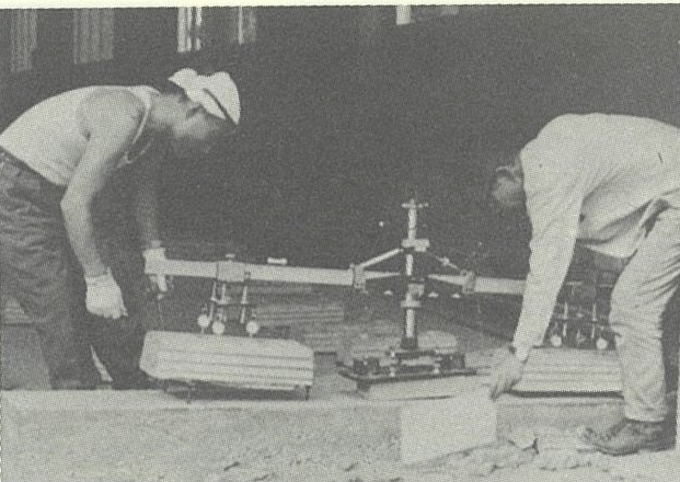 数は、左右レールで32となりレール直結のコンクリート打設をすることは容易ではない。そこで、軌框に組み立てたものに罫書きし、測点に一致させる軌上吊り工法、あるいは連接した軌道プロックに罫書きして路盤杭の遣り方に合致させるなど、簡素単純化をはかることによって直結軌道の直結敷設が行われてきた。