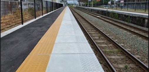 名古屋営業所は、JR名古屋駅西側(新幹線側)に位置するビルの2階にオフィスを構えており、東海地区のJRを始め私鉄・三セクのお客様に対して、主力商品であります「連接軌道」「総研型踏切舗装版」の販売及び材料補修等を行っています。また、当営業所では、駅ホーム用の笠石ブロックも扱っております。