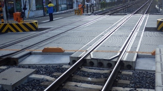 大阪営業所は、北陸、近畿、中国および四国といった広大なエリアを担当しており、30近くの鉄道事業者様と取引させて頂いております。拠点は大阪市にありますが、担当するエリアが非常に広いため、金沢と四国に事務所を構えることでエリア内全体での良質なサービスの提供に努めています。主として取り扱っている商品は、鉄道の踏切や併用軌道のブロック類とそれに付随するレール締結装置等の軌道用品ですが、商品の販売のみならず、これらを用いた工事施工も請負っています。多くの鉄道事業者様と取引させて頂いていることから、普通鉄道の標準軌と狭軌、併用軌道での標準軌と狭軌、更にはゲージ幅762mmのトロッコ列車用軌道も対象としているため、取り扱う商品は膨大で多岐にわたっています。更には当社製品を使用頂いている踏切はエリア内に3000以上もあり、それぞれの踏切は形状・寸法や種別・構造が異なるため、各鉄道事業者様からの問い合わせやニーズにしっかり対処すべく、踏切毎に保守管理に必要な情報を纏めたプロフィールを作成し、データベース化しております。また、エリア毎に担当者を定めることできめ細かなサービスを提供するとともに、難易度の高い改良工事等の問い合わせには所内の資材課、設計課および工事課の各専門家が連携し英知を結集し対応することで、お客様から絶対の信頼が得られるよう取り組んでおります。