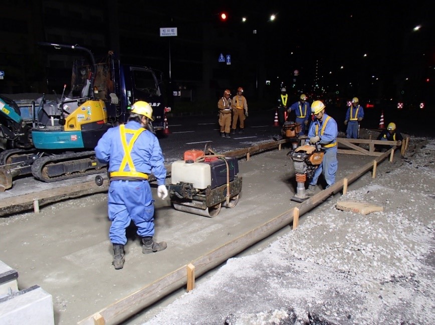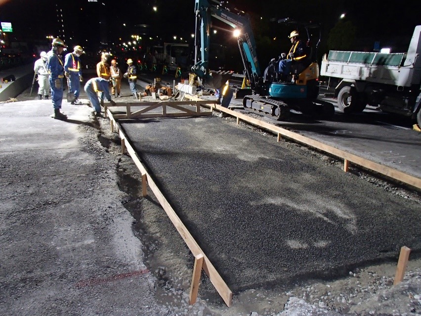 施工基面高を基準として舗装の撤去および所定の深さで掘削を行います。