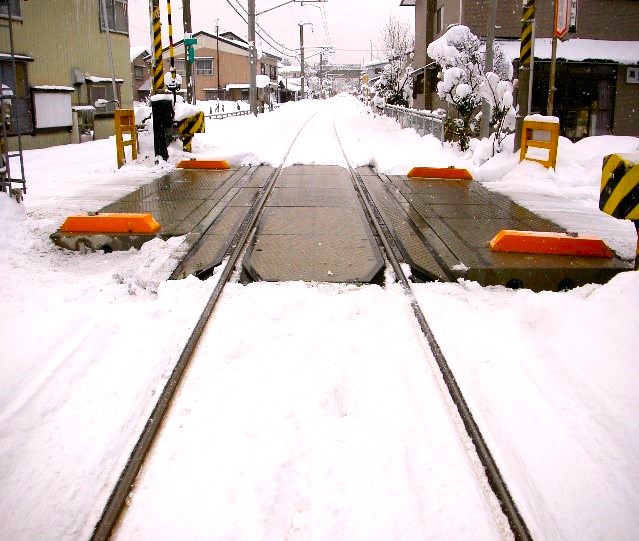 降雪地帯のスリップ事故防止・冬季の踏切の安全を確保し、舗装ブロックと組み合わせるとさらに広範囲な消融雪を実現します。