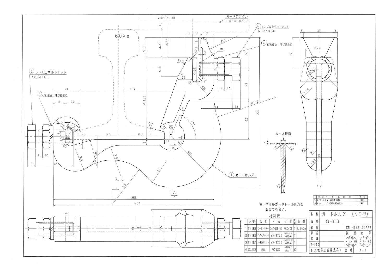 本線60、ガード50N 水平 |