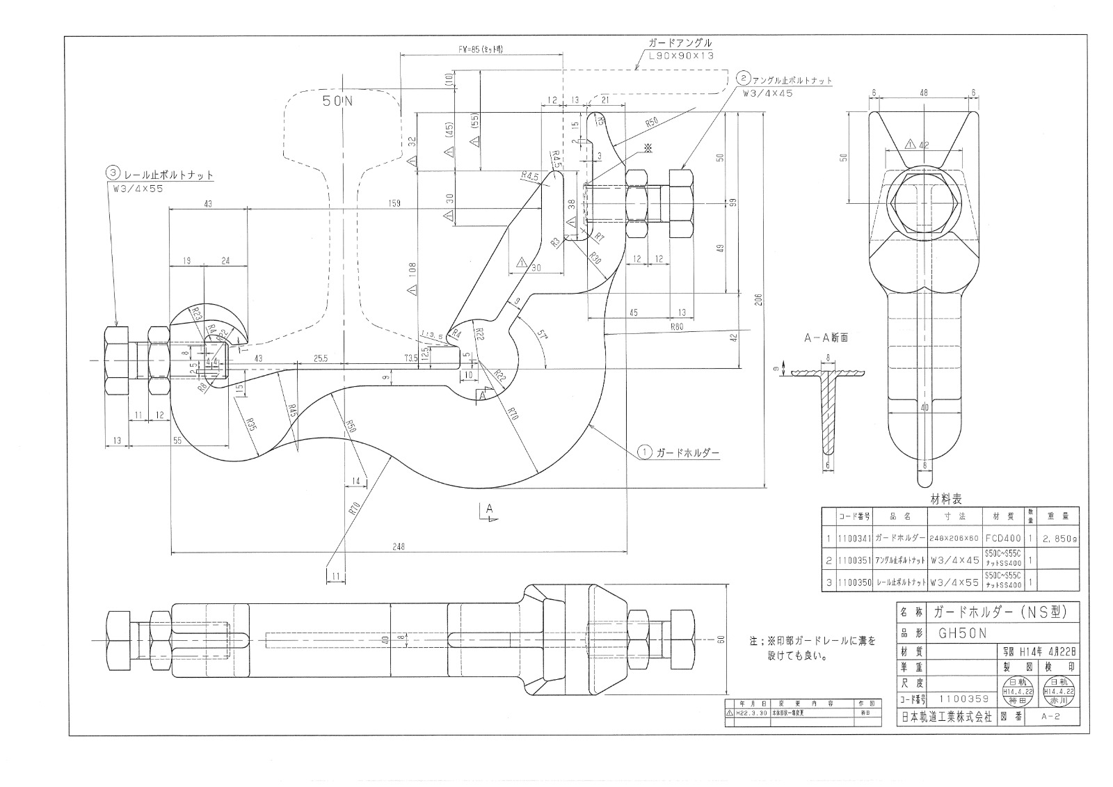 本線、ガード共50N(継目用) |