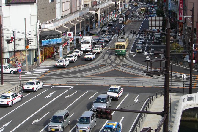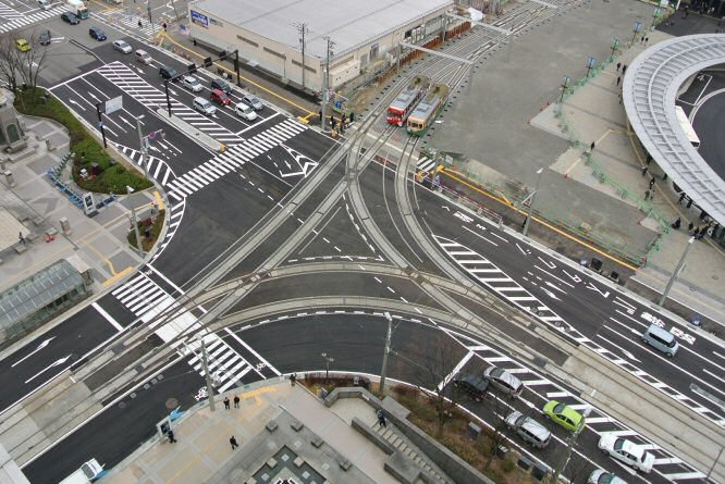 1967年5月に広島電鉄株式会社様 平野橋東詰交差点で連接軌道を初めて併用軌道に敷設を致しました。