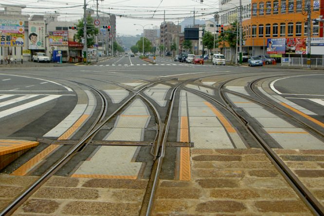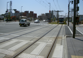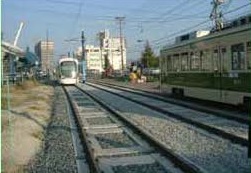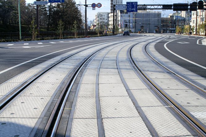 路面電車の軌道に対応した連接軌道で、交差点等で路面電車特有の急曲線の軌道や複雑な分岐器を軌道ブロック内に格納することにより道路面の平面性が向上し、電車および自動車の安全走行に寄与しています。