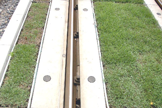 樹脂てん充材は中国塗料株式会社様のウレタンCUS-043を使用し、在来線および新幹線で40年以上施工実績のある材料です。併用軌道でも10年以上の耐久性を確認済みです。樹脂てん充連接軌道は環境対策の芝生植生軌道で使用が可能で、樹脂撤去およびレール更換が可能です。締結後直ちに電車の通常運行を可能とします。
